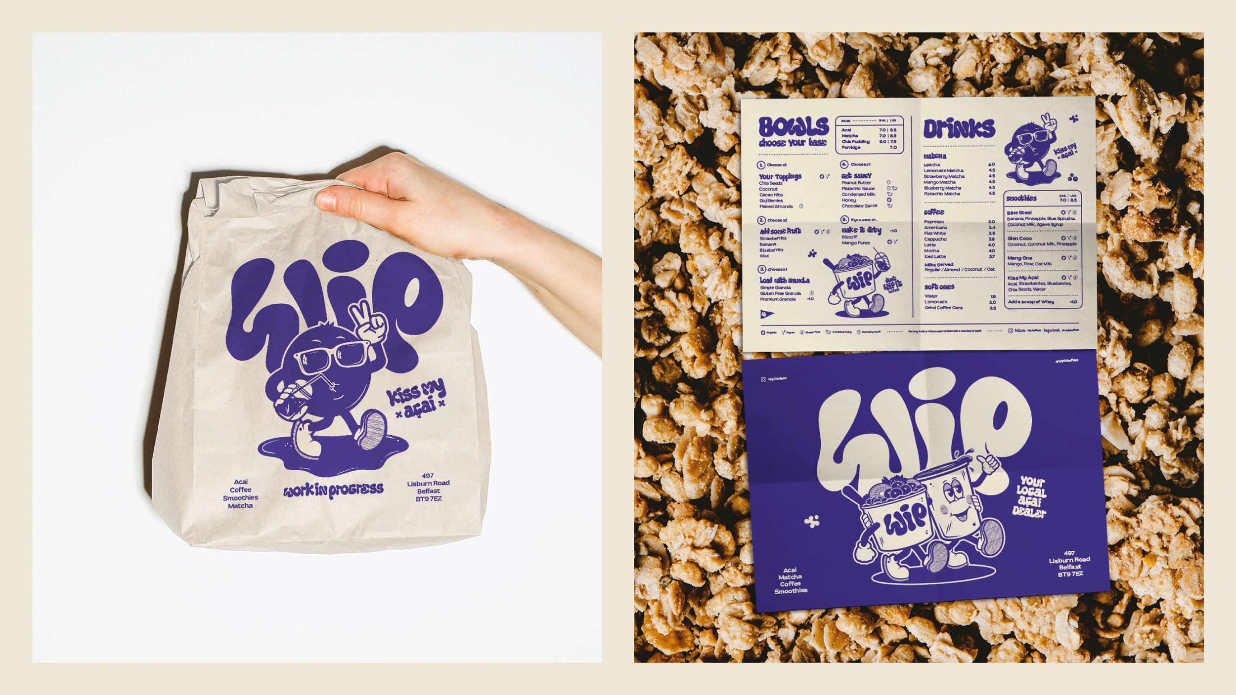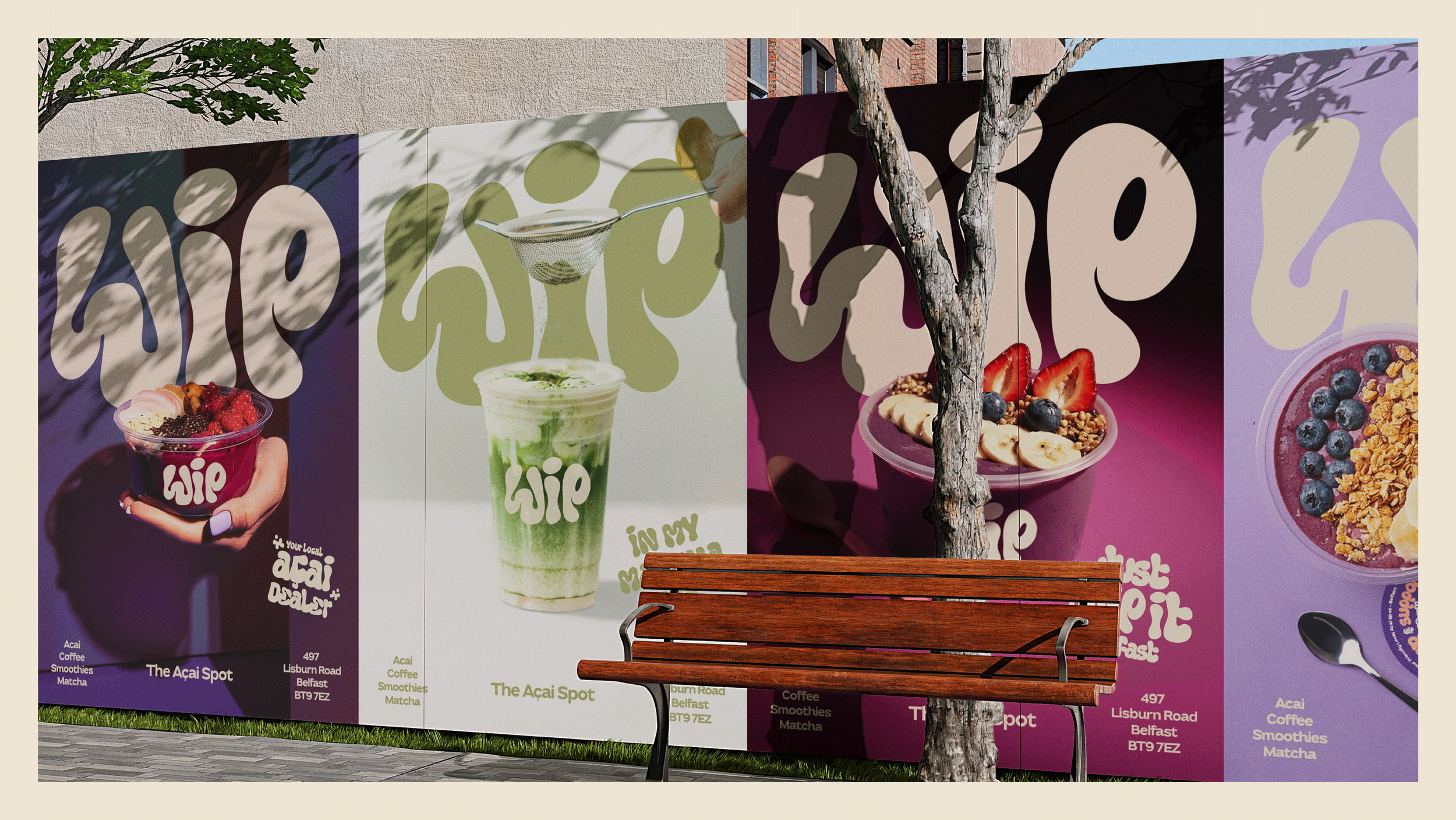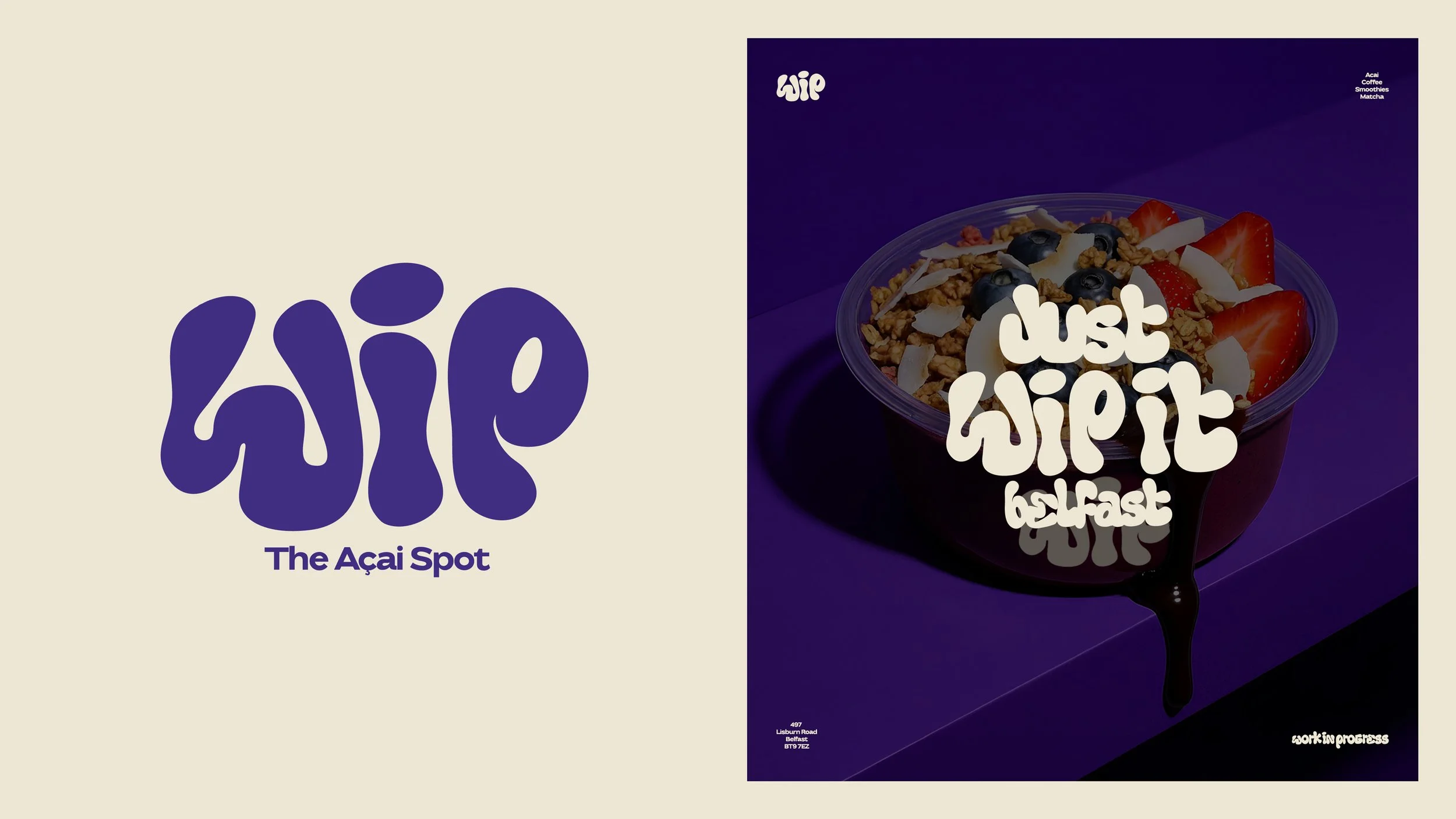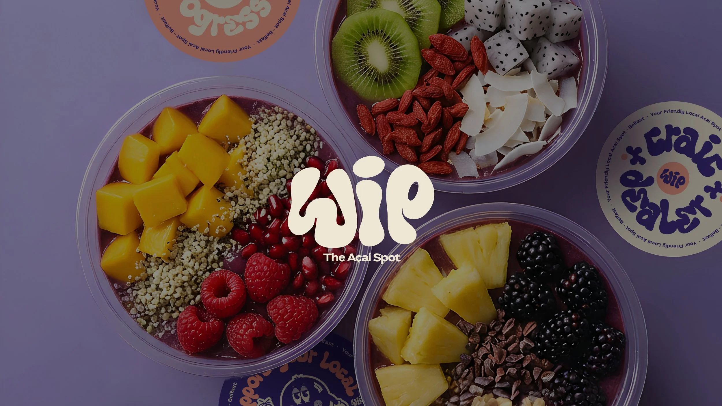WIP is officially the hottest açaí joint to hit Belfast. Slinging stacked bowls, killer coffee, and matcha that’ll make you feel like you’ve got your life together, they needed a brand with enough personality to keep up. So we got to work: a hand-drawn logo with plenty of swagger, a custom typeface to match and a whole crew of açaí mascots and mischief-making characters. Along the way, we cooked up some snappy slogans and turned them into bold lock-ups to pull everything together into one loud, confident, unmistakeably-WIP package.